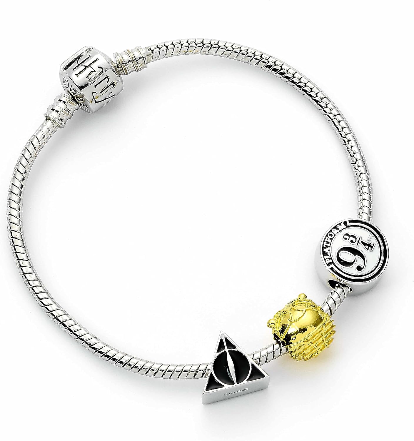 Harry Potter – Deathly Hallows, Golden Snitch and Way 9 3/4 – 17 cm Silver Charm Bracelet