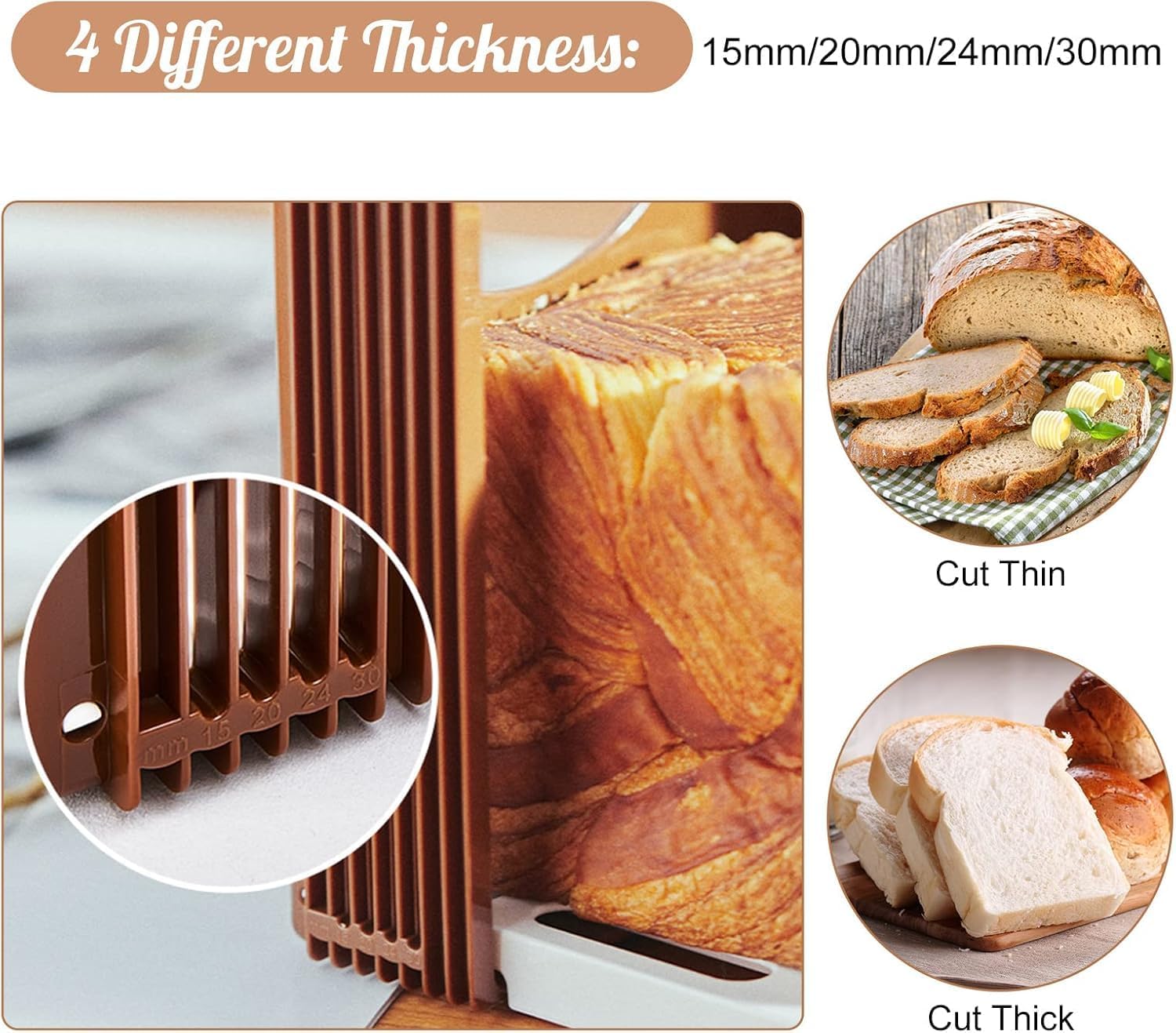 Hasanat Essentials Bread Slicer – Foldable Sandwich & Toast Cutting Guide with 4 Adjustable Thickness Settings for Homemade Bread & Kitchen Use