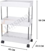 Hasanat Essentials Slim Rack Shelf with Wheels – Kitchen Storage Trolley,Space Saving Multipurpose Rolling Utility Organizer Hide Beside Fridge,Washing Machine,Bathroom,Pantry,Makeup Holder (3 Layer)
