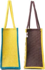 H&B Jute Shopping Bag – Designer Tote Bag | Trendy Bags | Shoulder Bag | Fashionable Tote | Office Bags | Grocery Bag | Handbag | Jute Bag | Reusable Bags – Combo of 2 (Combo Offer – Sunflower)