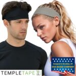 Two Temple Tape Sweatbands per Order (1-Black, 1-Gray) – Unisex, one size fits most – 4 inch Wide Band