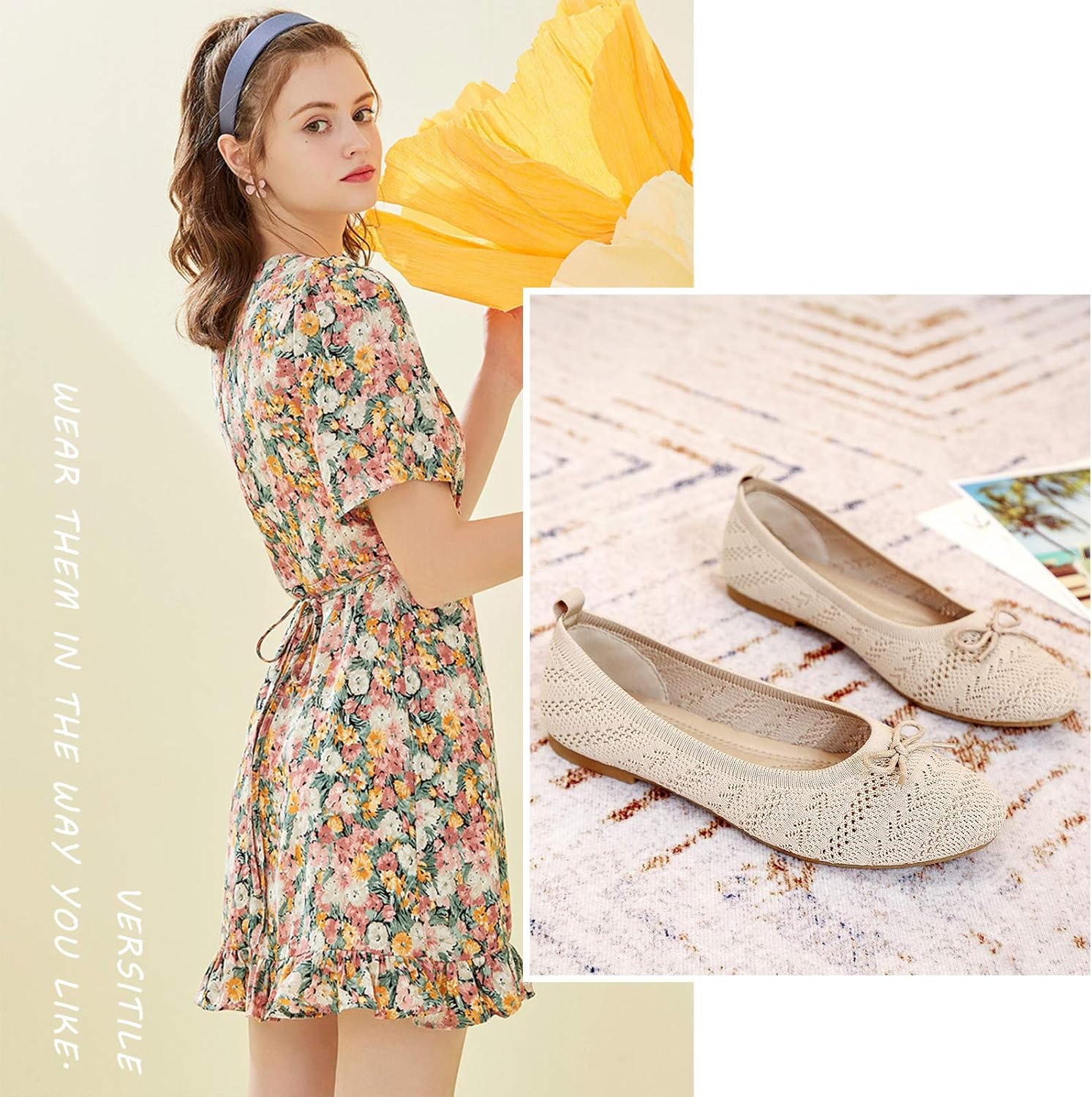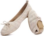 HEAWISH Women’s Flats Shoes Comfortable Black Beige Flats Crochet Lace Mesh Round Toe Slip On Casual Ballet Flats Dress Shoes