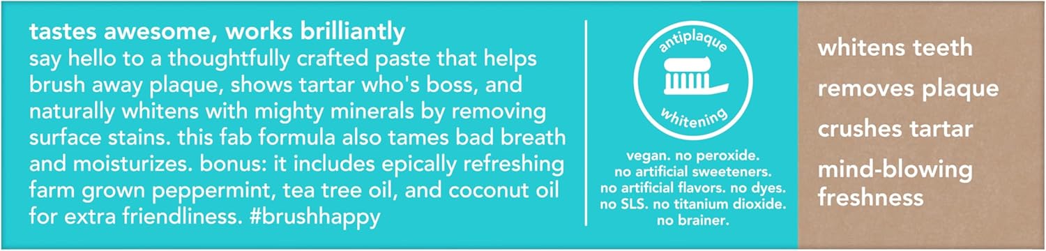 SEE YA STAINS: This whitening vegan toothpaste naturally whitens with mighty minerals by removing surface stains, helps brush away plaque, and shows tartar who’s boss