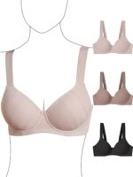 Hersunei Womens Push Up Everyday Bras, 3 Pack Seamless Casual Bras, Full Coverage Underwire Bras, Everyday All-Match Bras Set, Wide Strap Bra for Everyday
