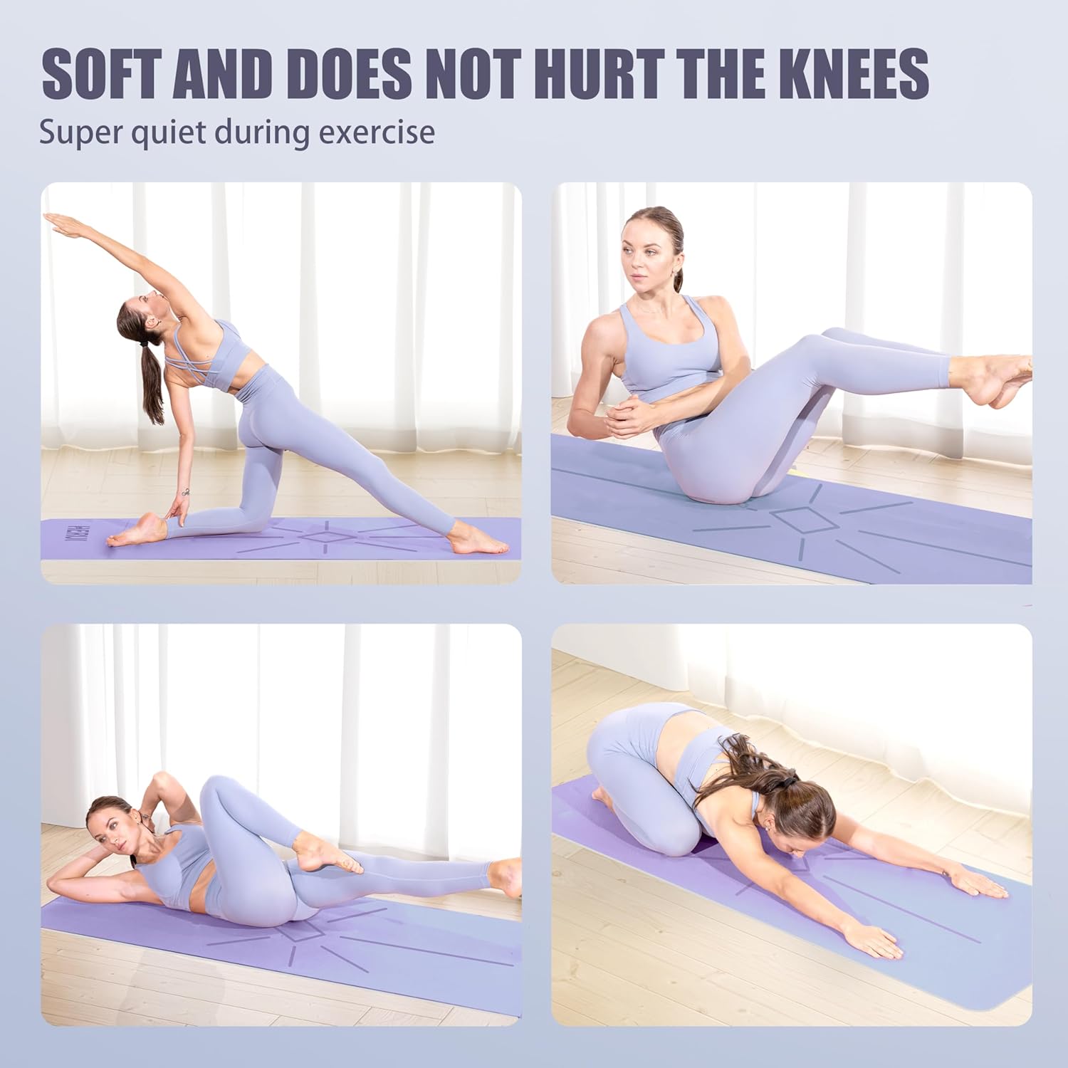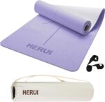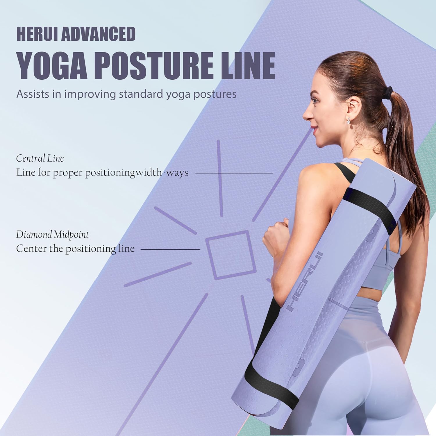 HERUI Yoga Mat with Alignment Lines – Anti-Slip TPE Exercise Mat for Yoga & Pilates – 183CM x 61CM x 6MM – Includes Carry Bag, Perfect for Beginners & All Levels