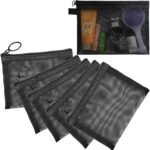 HIHIDAY 6PCS Nylon Mesh Zipper Pouch Bags,Mesh Makeup Bag with Zipper Small Travel Kit,Travel Toiletry Kit Set Storage Case Beauty Makeup Cosmetic Accessories Organizer for Women and Men (BLACK)