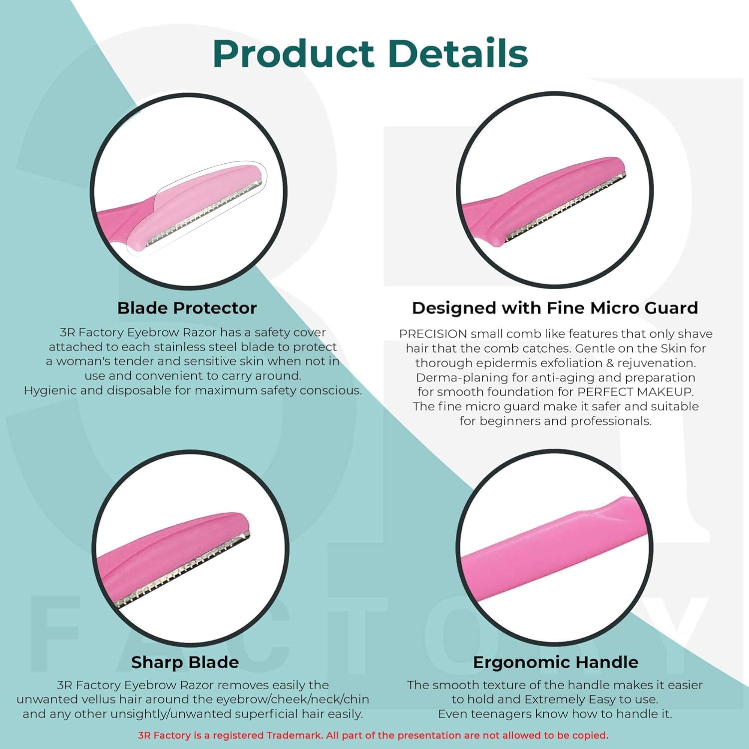 💗Material: These eyebrow razors are made of stainless steel blades with fine micro guards, the gracefully curved handles for easily control and will not hurt the skin.