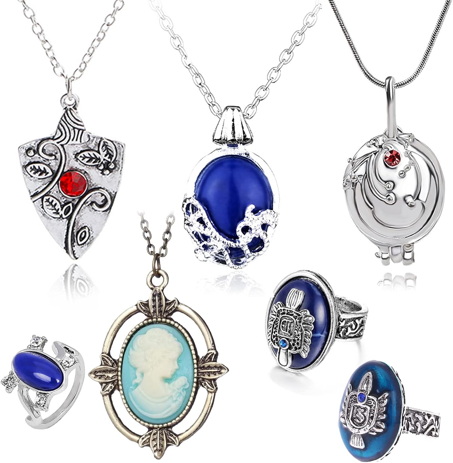 HJYZY 7 pcs Vampire Diaries Jewelry Daywalking Katherine Sapphire Elena Gilbert Opening Vervain Locket Charm Pendant Bonnie Necklace Salvatore Damon Stefan finger Family Crest Ring, Zinc, No Gemstone