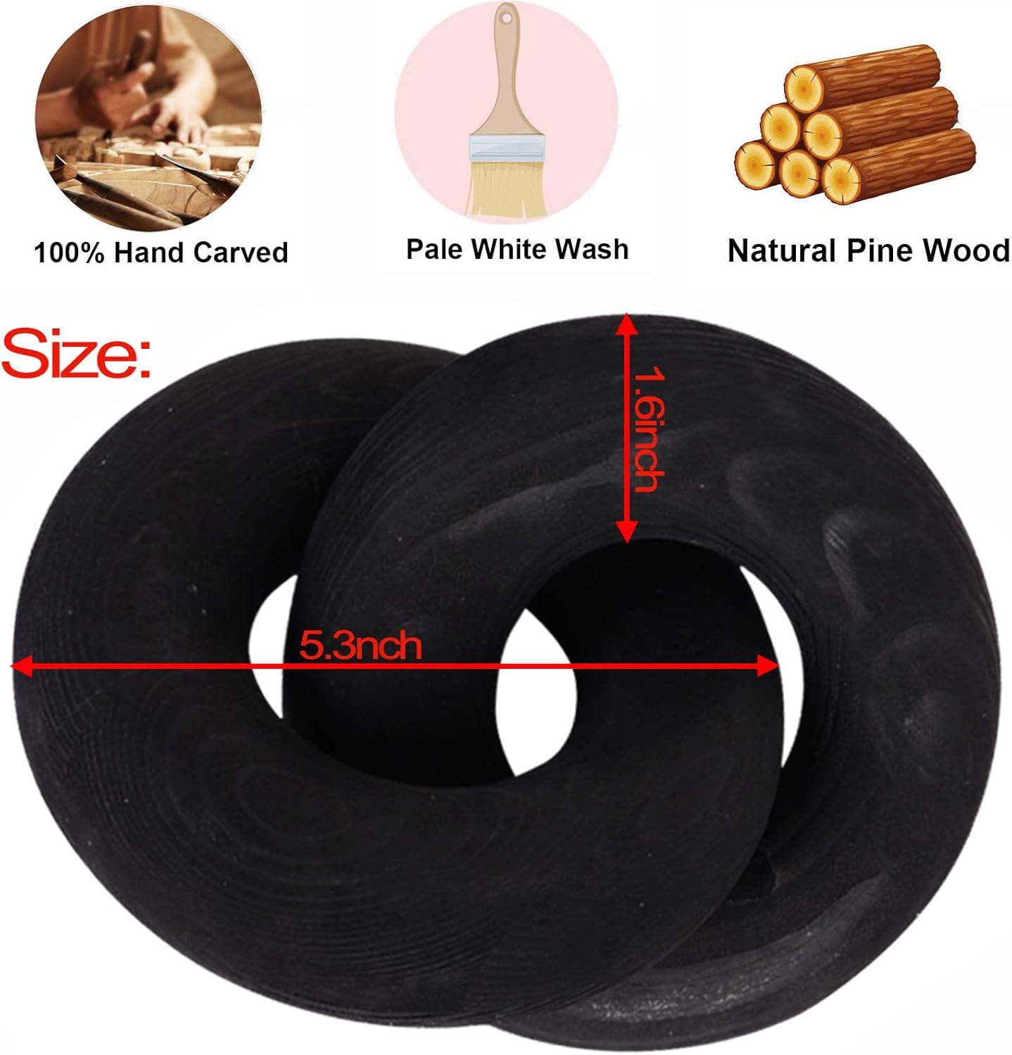 HMASYO Black Wood Knot Decor, 2-Link Large Chain Link Decor, Hand Carved Boho Home Decorative Object for Living Room Coffee Table Fireplace Shelf Farmhouse