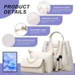 Homarket 3pack Purses and Handbags for Women Fashion Ladies PU Leather Top Handle Satchel Shoulder Tote Bags-White