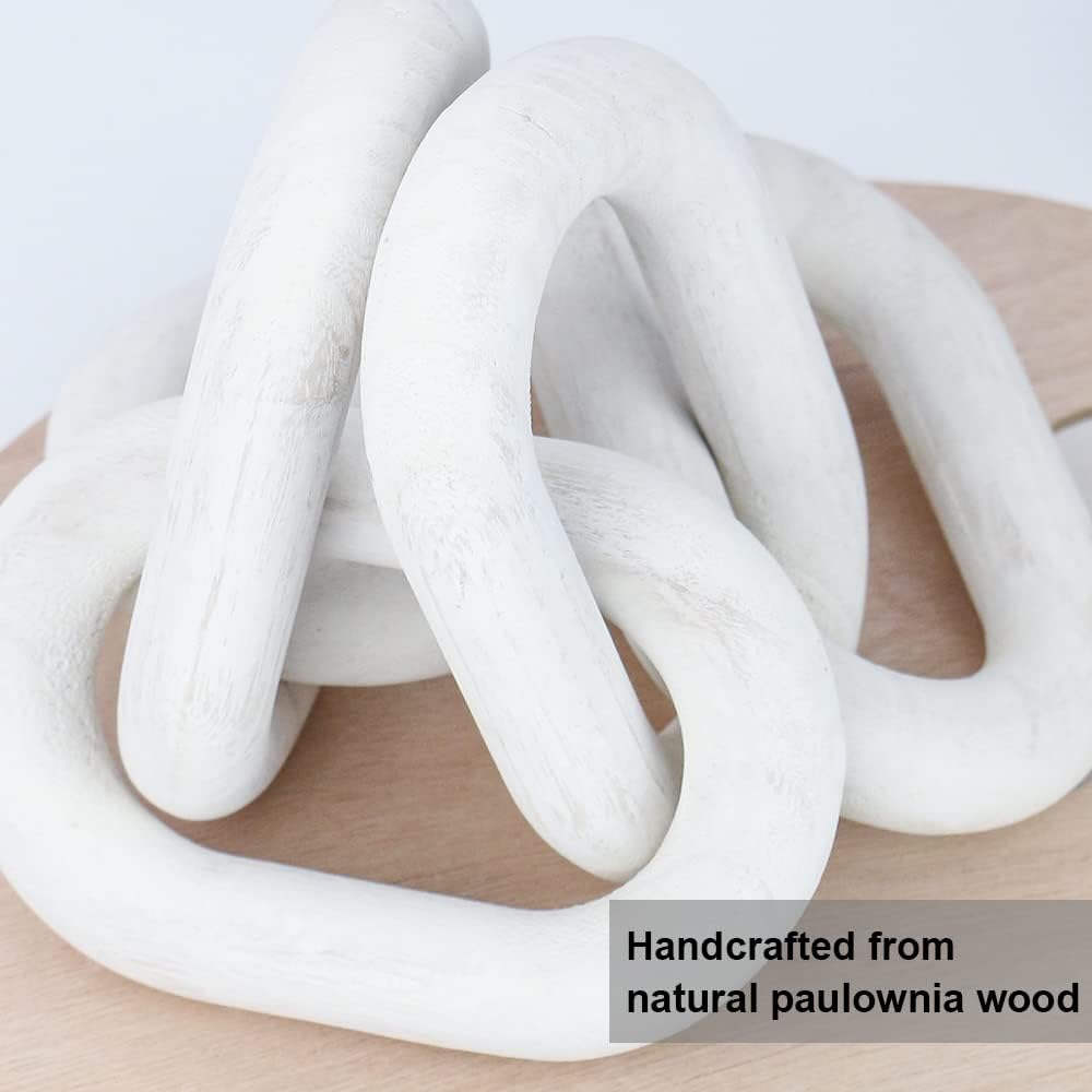 HOMEGG Wood Chain Link Decor, Hand Carved Wooden 5-Link Chain, Modern Farmhouse Boho Decor for Bookshelf, Living Room, Bedroom, Entryway (White)