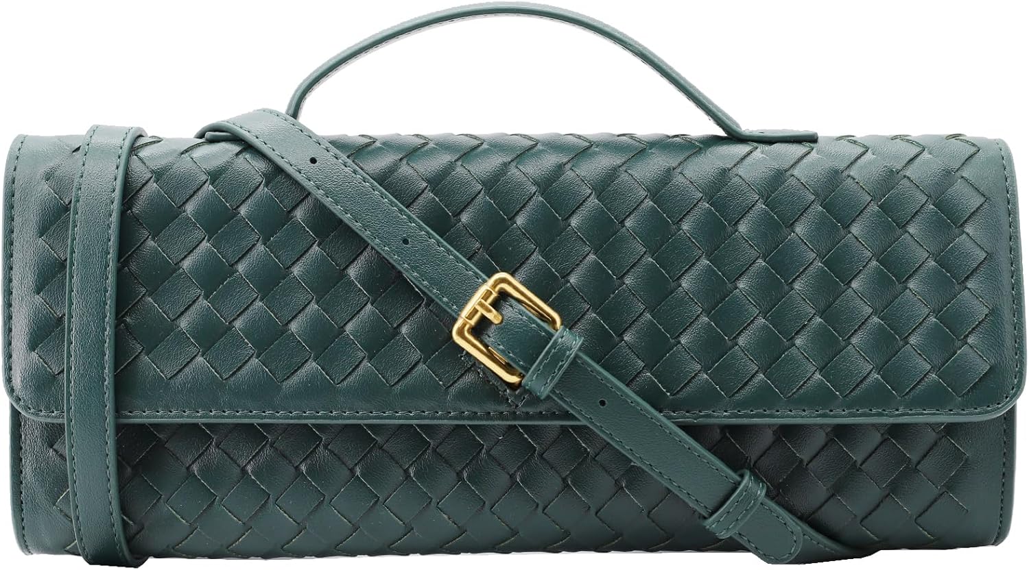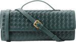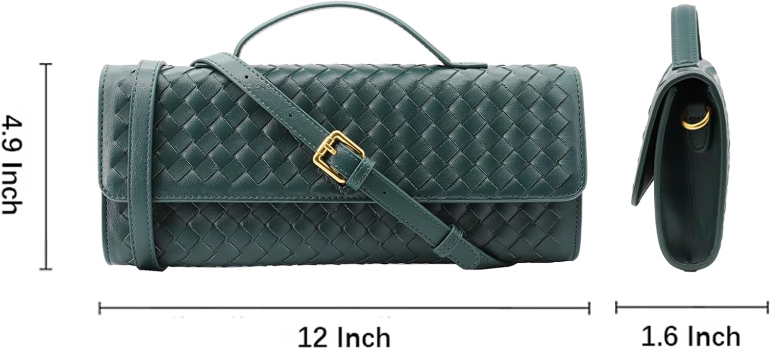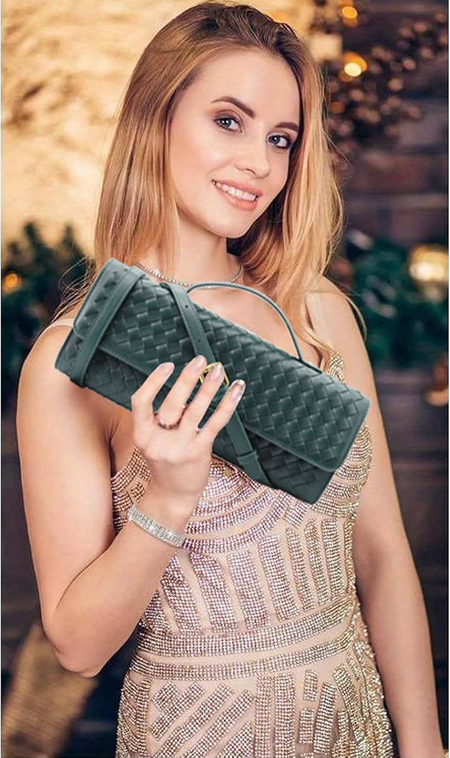 Crossbody Woven Clutch Evening Bag for Women with Detachable Chain Leather Handbags Shoulder Bag
