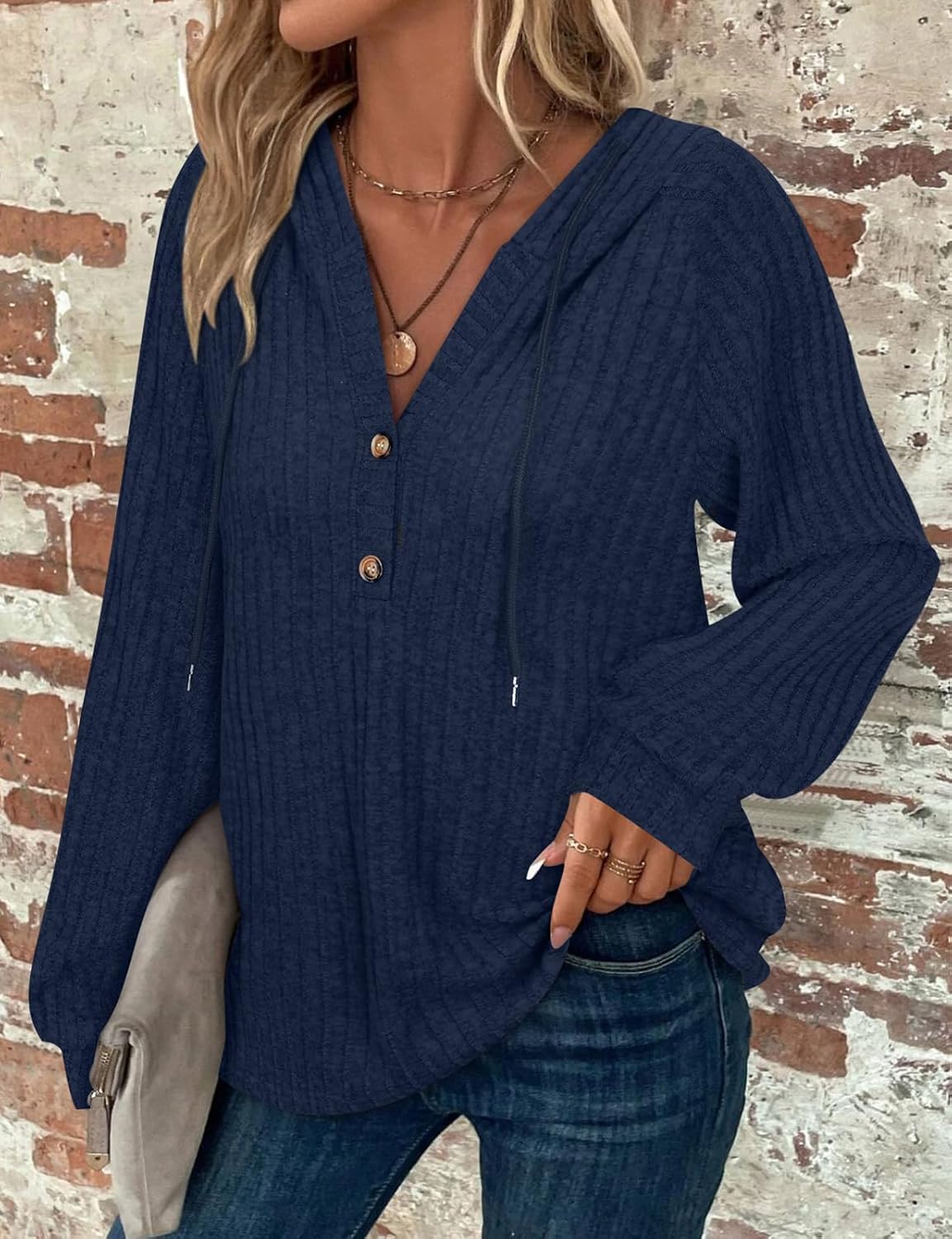 Hoodies for Women Ladies Jumpers Long Sleeve Tops Drawstring Button V Neck Casual Pullover Sweatshirt Spring Autumn Winter Tunic Clothes