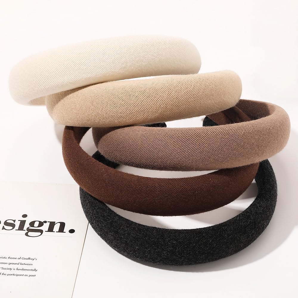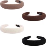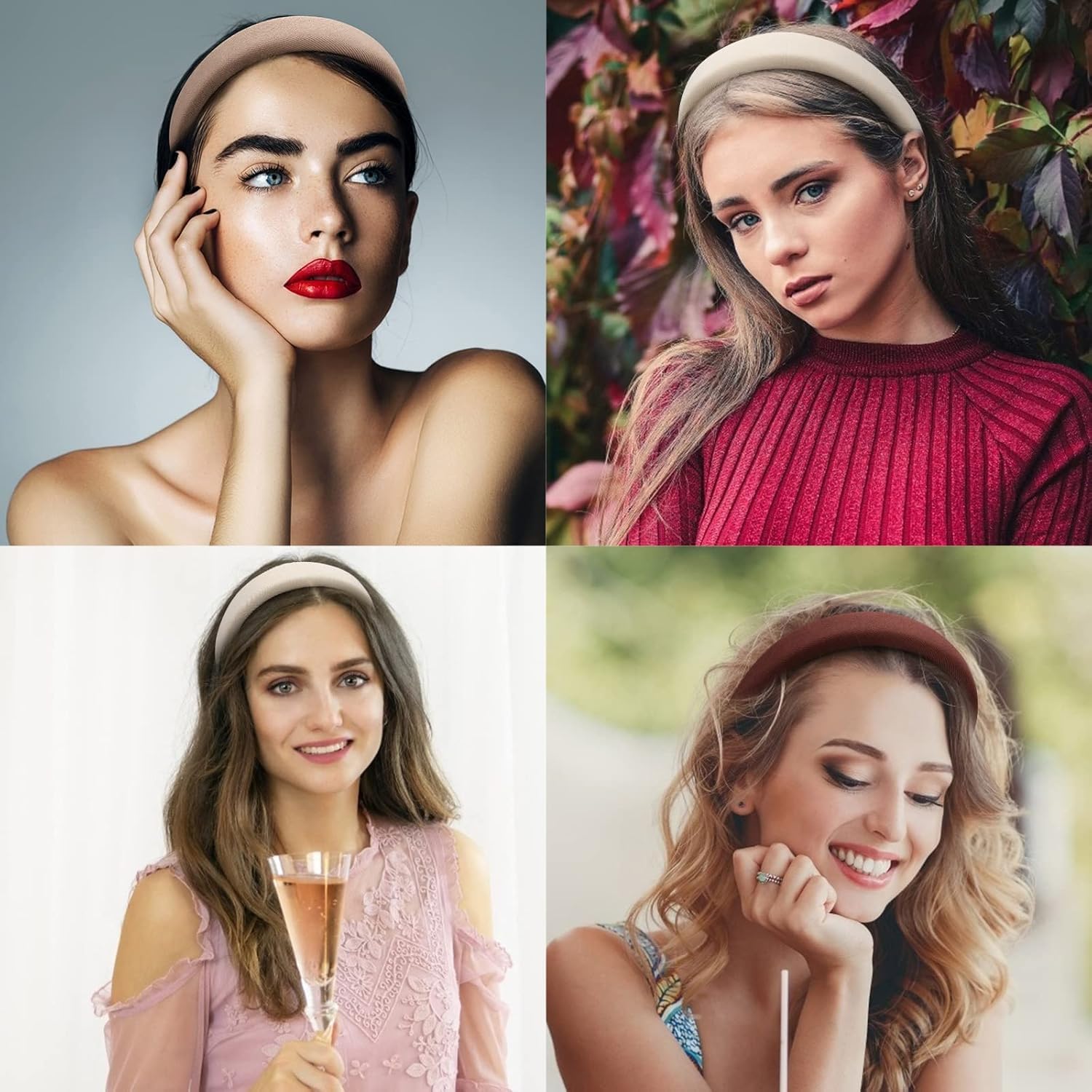 HOOTO 4PCS Padded Headbands for Women and Girls, Fashion Wide Plain Turban Hairbands Wide Elastic Non Slip Hair Hoops Hair Accessories