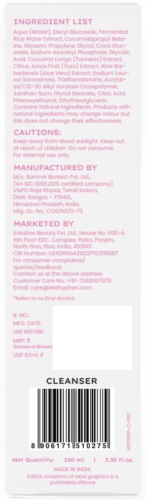 Be the first to review “Hyphen Rice Water Brightening Face Wash | Daily Cleanser for Women and Men | Brightens Skin | Removes Dirt & Impurities | Gentle, Non-drying, Fragrance Free Formula | 100 ml”