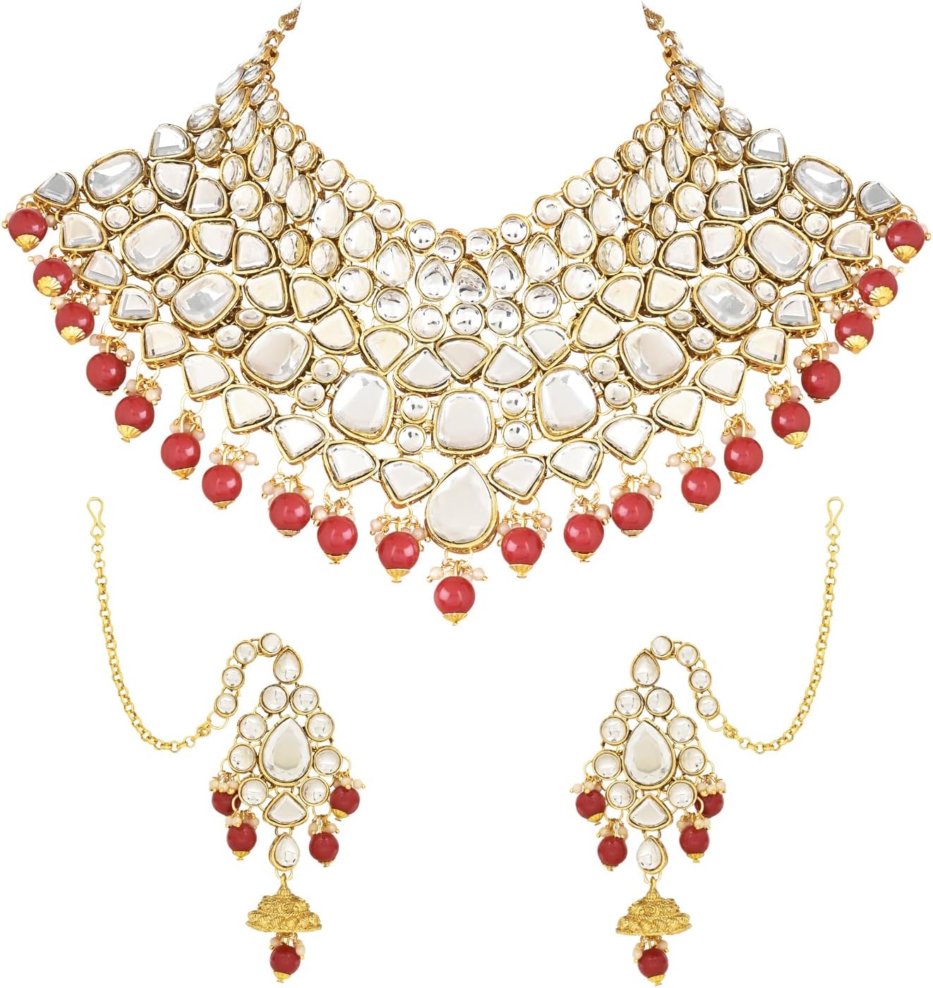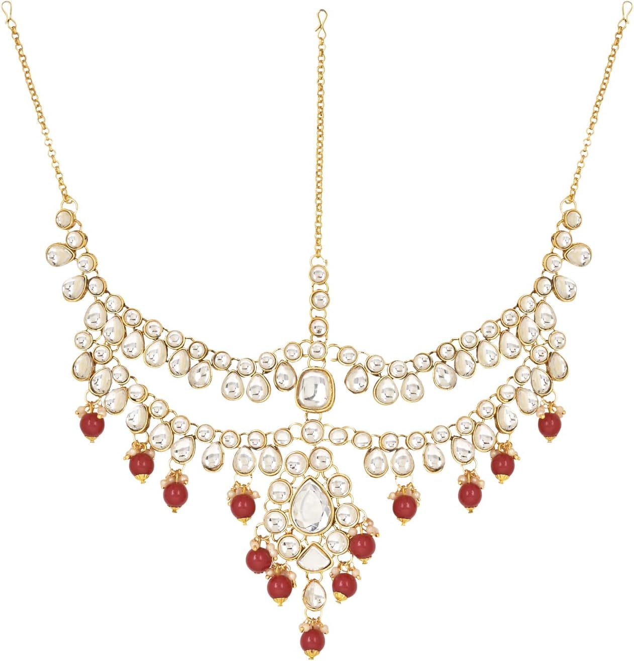 I Jewels Ethnic Gold Plated Pearl & Kundan Stone Work Bridal Jewellery Set For Women