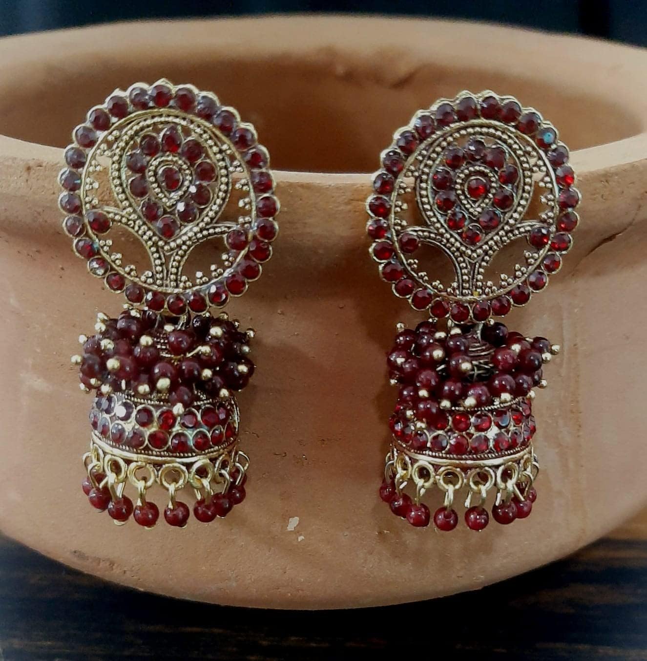 Be the first to review “Indian Designer Ethnic Vintage Traditional Oxidised Gold Polish Pearl CZ Stones Jhumka Earrings Jewelry Women” Cancel reply