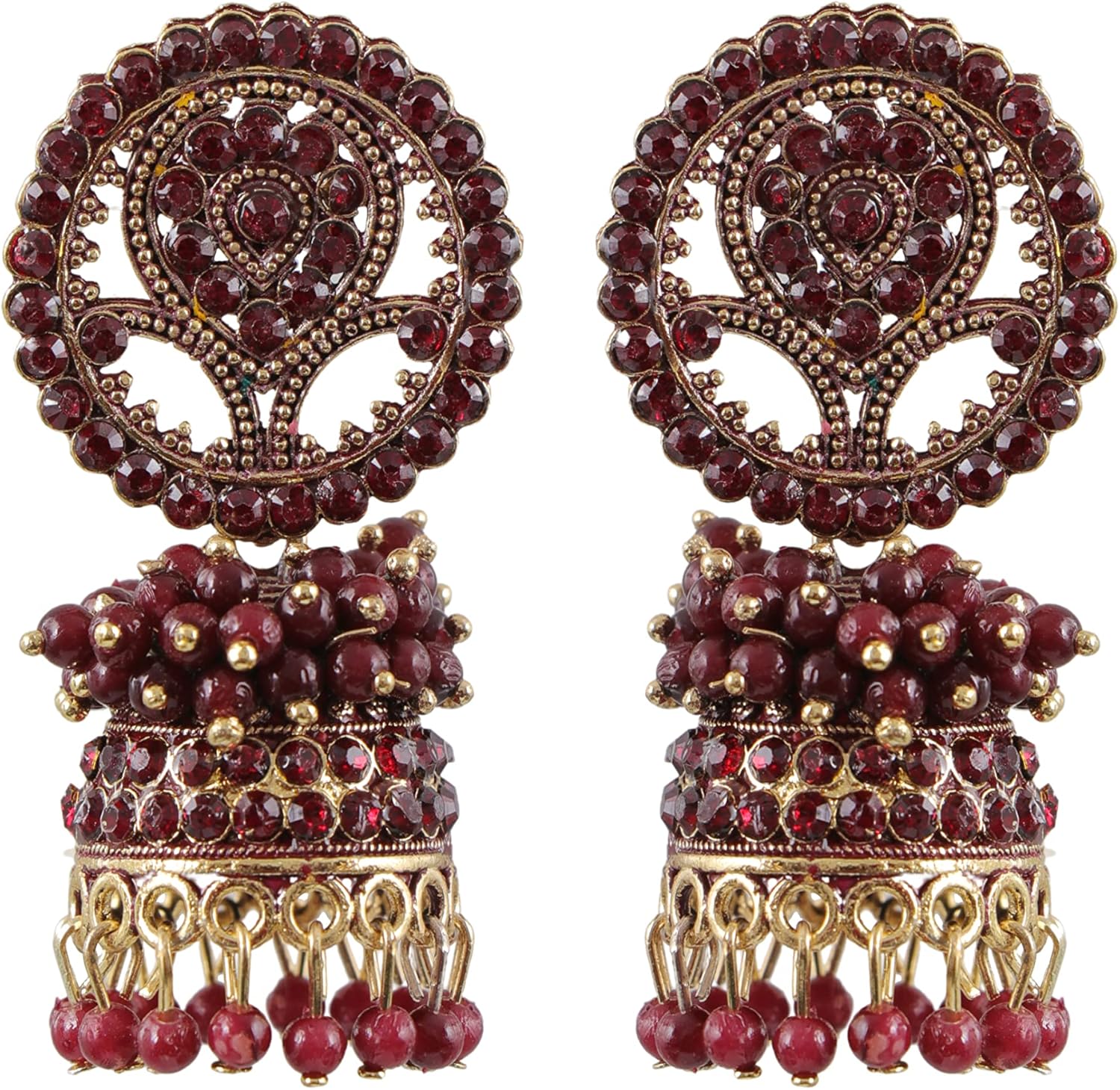 Indian Designer Ethnic Vintage Traditional Oxidised Gold Polish Pearl CZ Stones Jhumka Earrings Jewelry Women