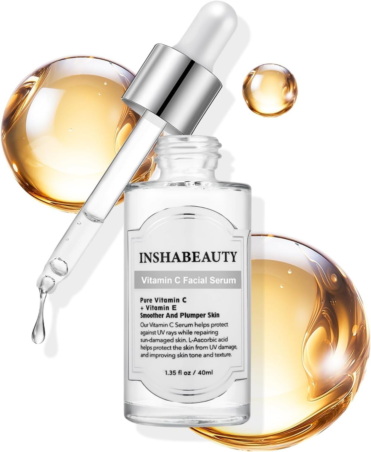 Inshabeauty Vitamin C Face Serum, hyaluronic acid, Vitamin E skin care, personal care products, Smoother and Plumper Skin, Anti ageing,Anti wrinkles (40ml).