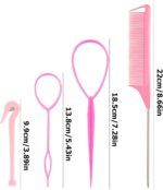 IRYNA 4Pcs Pink Hair Looping Tool, French Braid Hair Styling Set Loop Tool Hair Band Cutter Rat Tail Comb Great Tool for All Hair Types