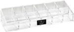 STORAGE SOLUTION: This compact yet stylish acrylic organizer is simple yet modern. It holds up to twelve (12) items and displays them on two tiered rows of six. The stand, with individual square sections, keeps small supplies separated, tucked away, and clutter free while being held together in one convenient location