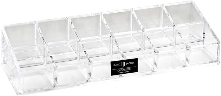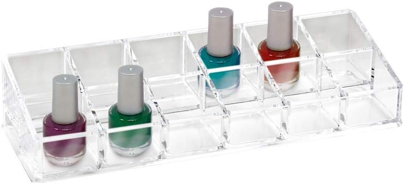 Isaac Jacobs Clear Acrylic 12 Compartment Nail Polish Holder Organizer for Makeup Essential Oils Storage Solution Rack Display (2 Rows (x6))