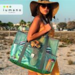 iumano Multipurpose Reusable Women Beach Bag – Foldable Hand Bag with 2 Travel Pouch Bags – Waterproof Large Beach Tote Bag, Shopping Tote Bag, Storage Bag, Grocery Bag, Beach Totes Bags