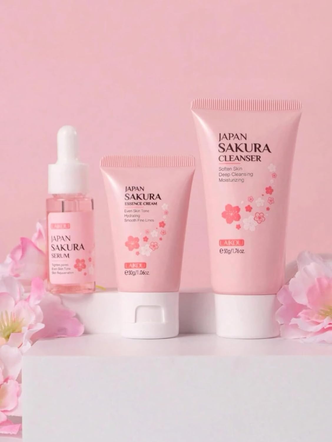 Nature’s Secret Unveiled: Infused with the beauty of Japan Sakura, our skincare trio promises to nourish, hydrate, and unveil your skin’s natural luminosity.