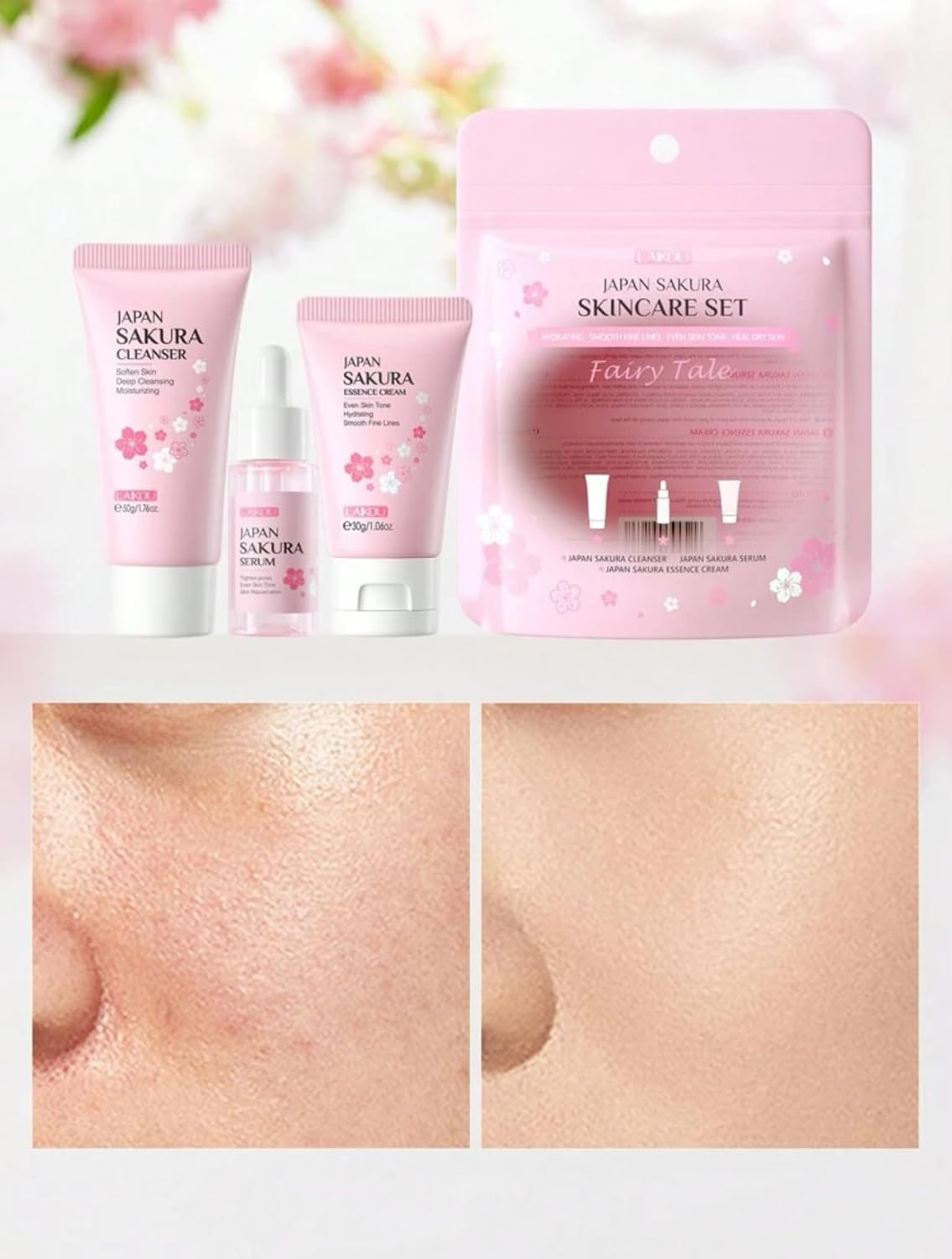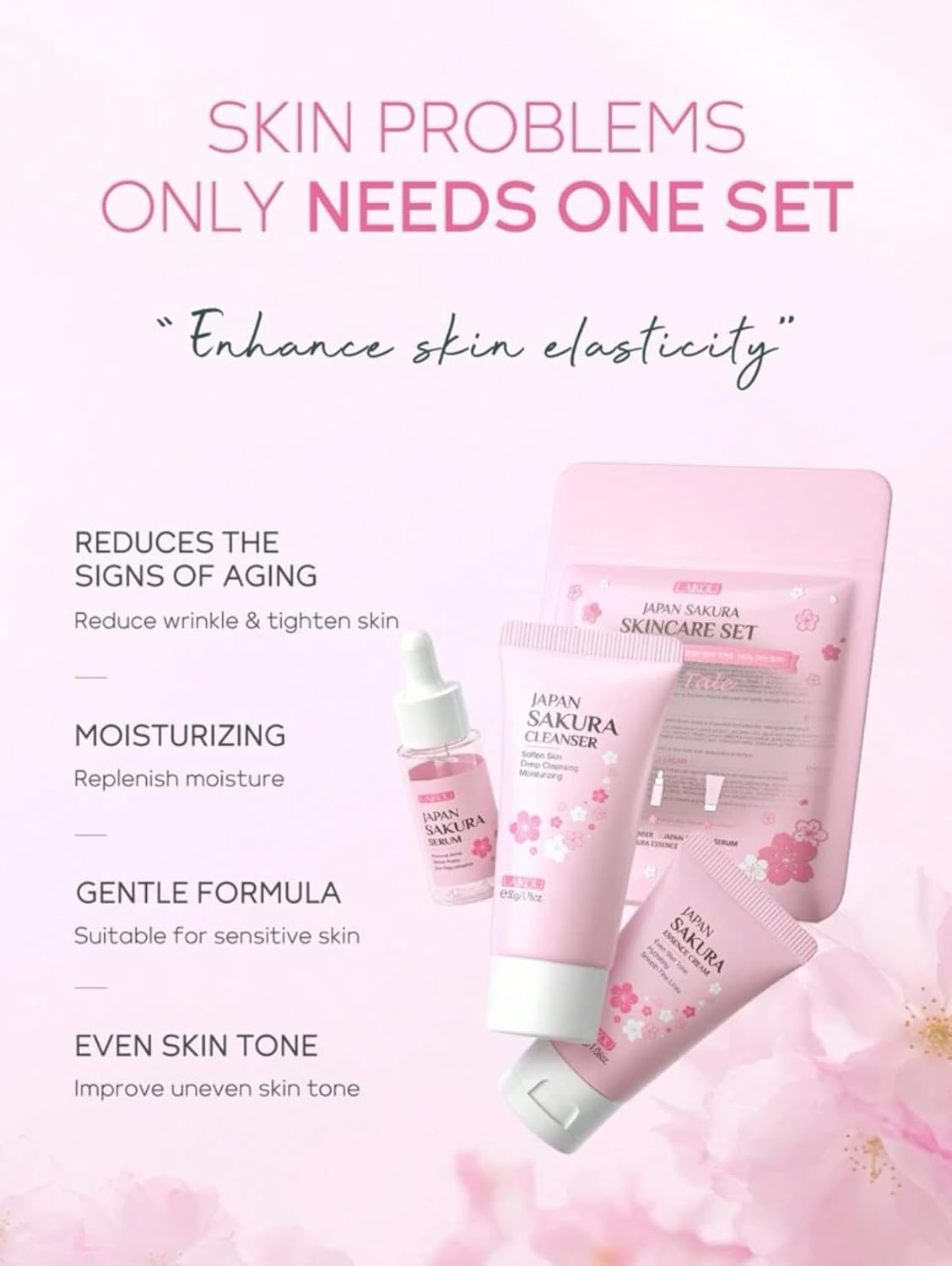 JAPAN SAKURA SKINCARE SET, HYDRATING, SMOOTH FILE LINES, EVEN SKIN TONE, HEAL DRY SKIN