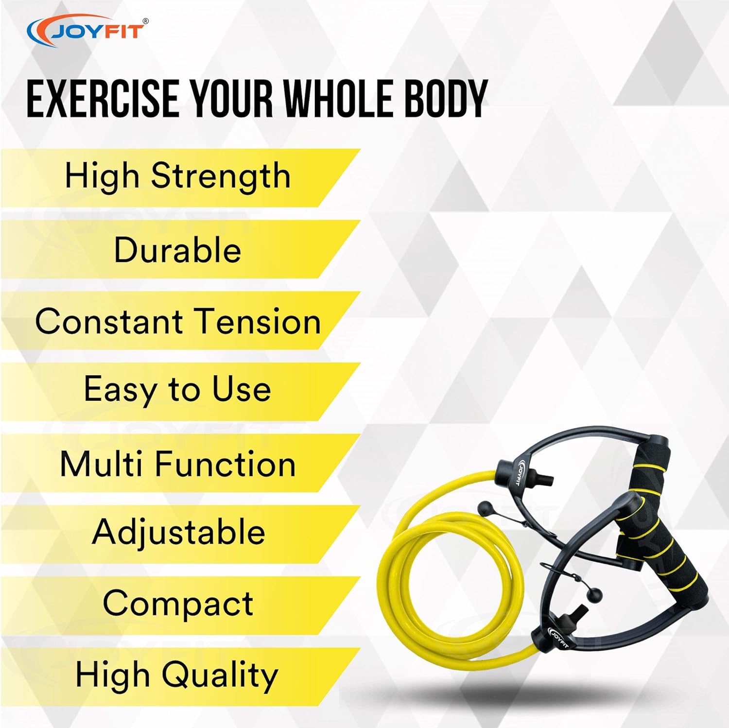 ✅ [MULTI- LEVEL RESISTANCE TUBES] Joyfit resistance tubes are available in 5 different colours for various resistance levels. Yellow10 LBS, Red 15 LBS, Blue 20 LBS, Green 25 LBS, Black 30 LBS. This product listing comes with a single resistance tube of your choice. For better experience and intensity choose a resistance band suitable for your fitness needs. Make your workouts challenging by adding the right resistance band to your workouts.