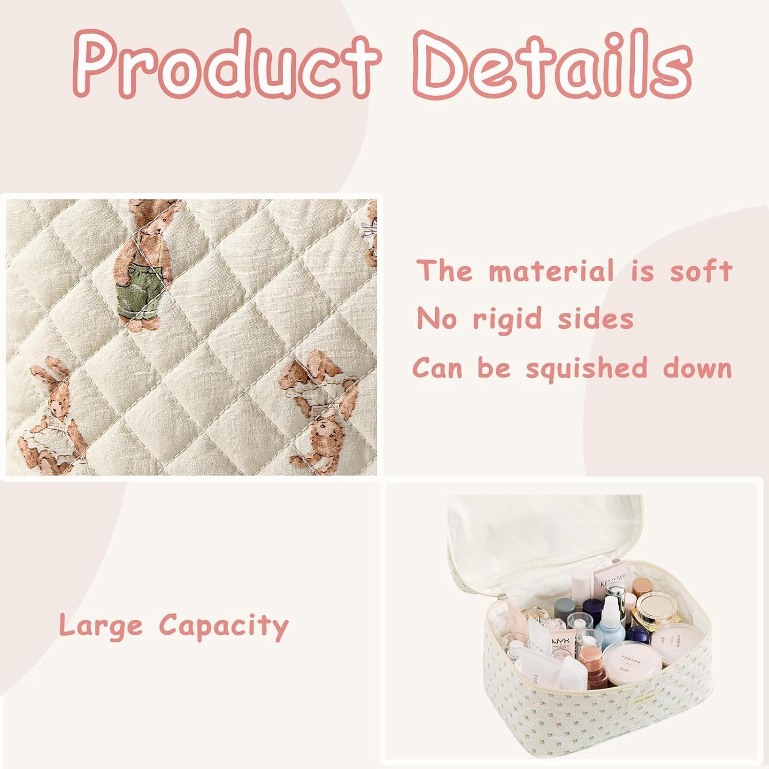 🌸【3-Piece Floral Makeup Bag Set】 – This complete cosmetic organizer includes three quilted cotton bags (10x6x6 in, 10x3x7 in, 7.5×2.3×3 in), perfect for storing makeup brushes, skincare products, and travel essentials while keeping your vanity or suitcase neatly organized.