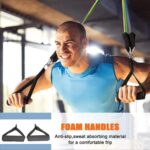 This Exercise bands kit comes with 2 soft cushioned foam handles for comfort, protect your hands from injuries and absorb sweat to prevent slipping during exercise.
