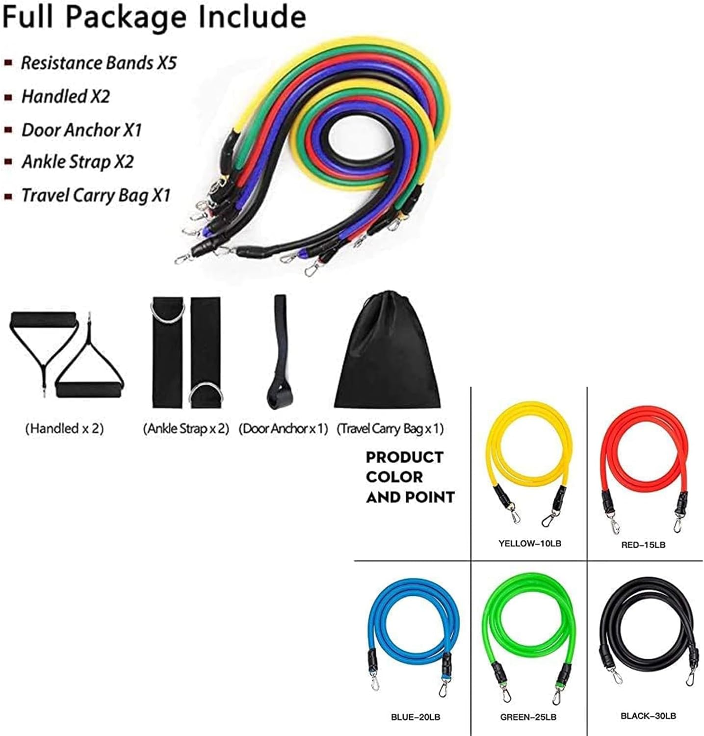 Joyzzz Resistance Band Set, 11 PCS Resistance Bands for Exercise, Fitness Latex Resistance Bands Set, 5 Color Fitness Rubber Bands Training Exercise Yoga Pull Rope Gym Equipment Elastic Band