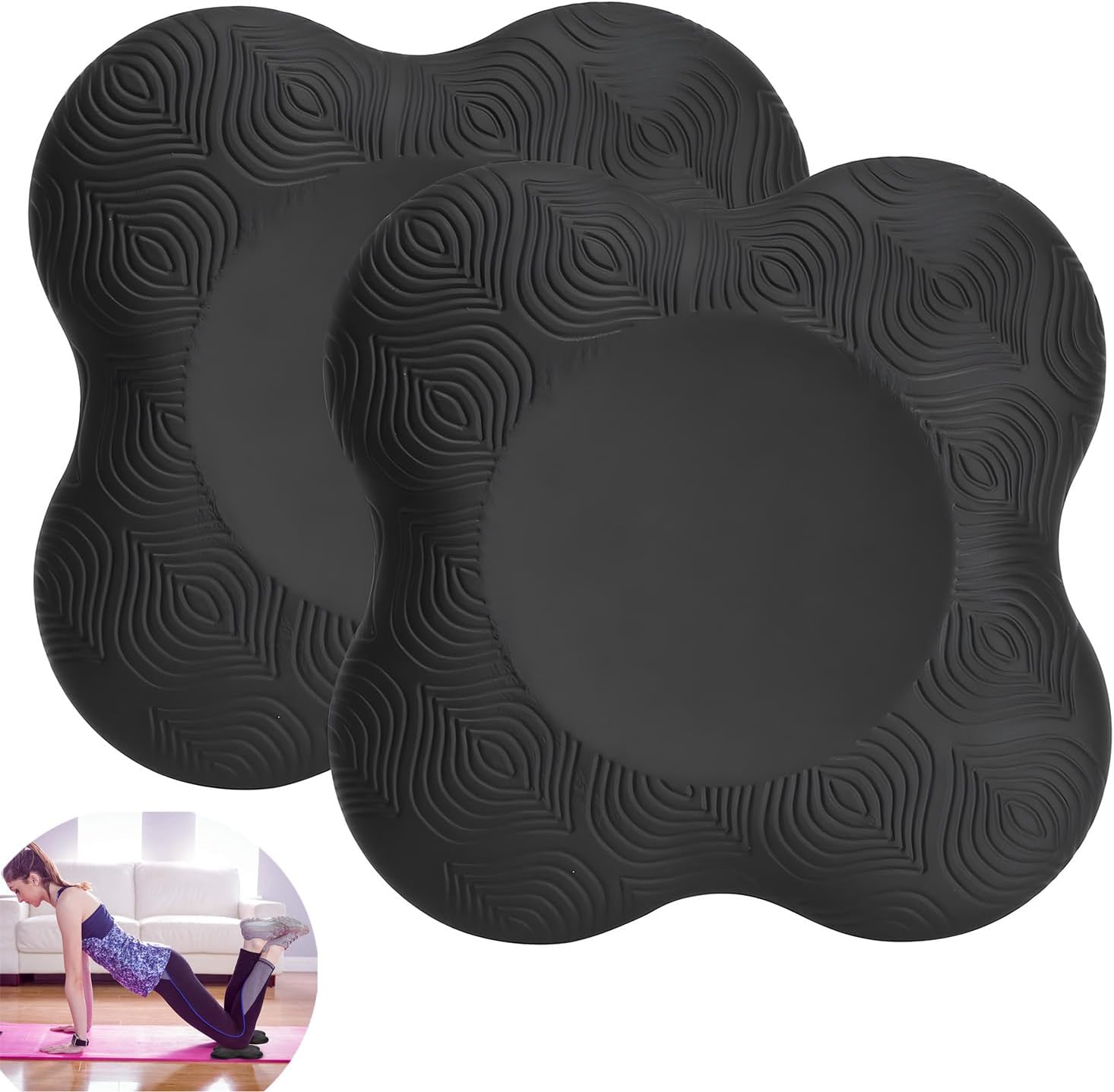 Our yoga support pads have a non-slip textured surface with a concave center to give your knees, elbows, and support while providing excellent traction and grip, allowing you to better grip the yoga mat and maintain perfect balance.