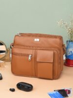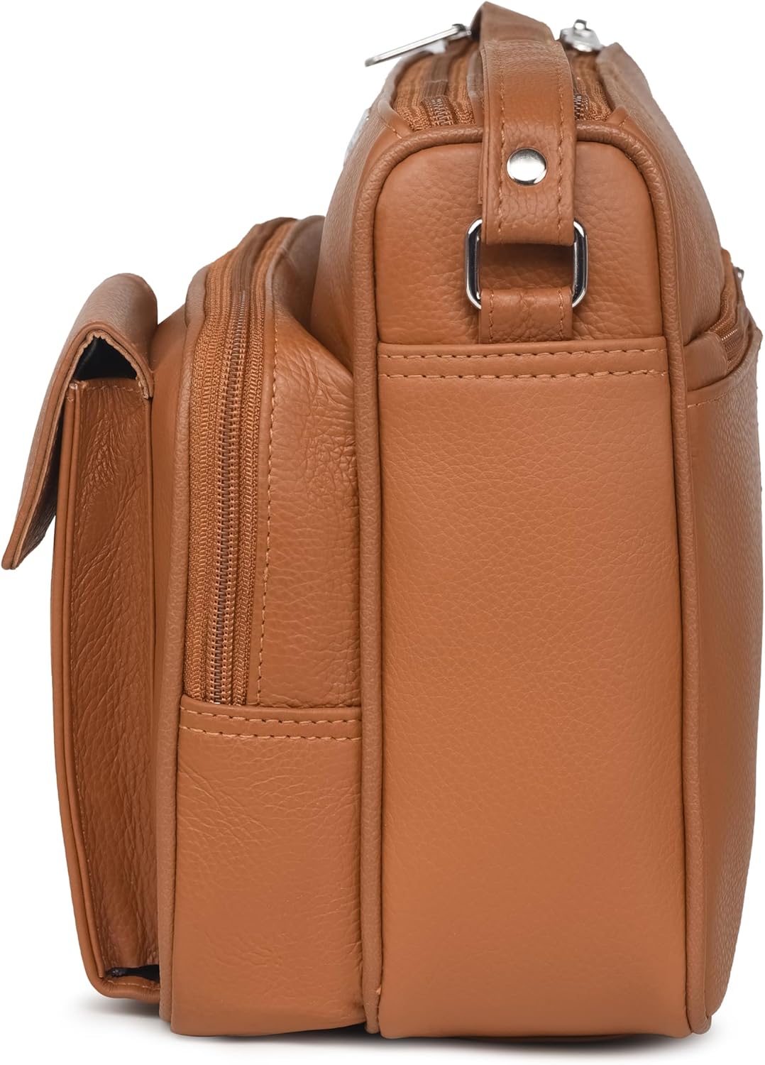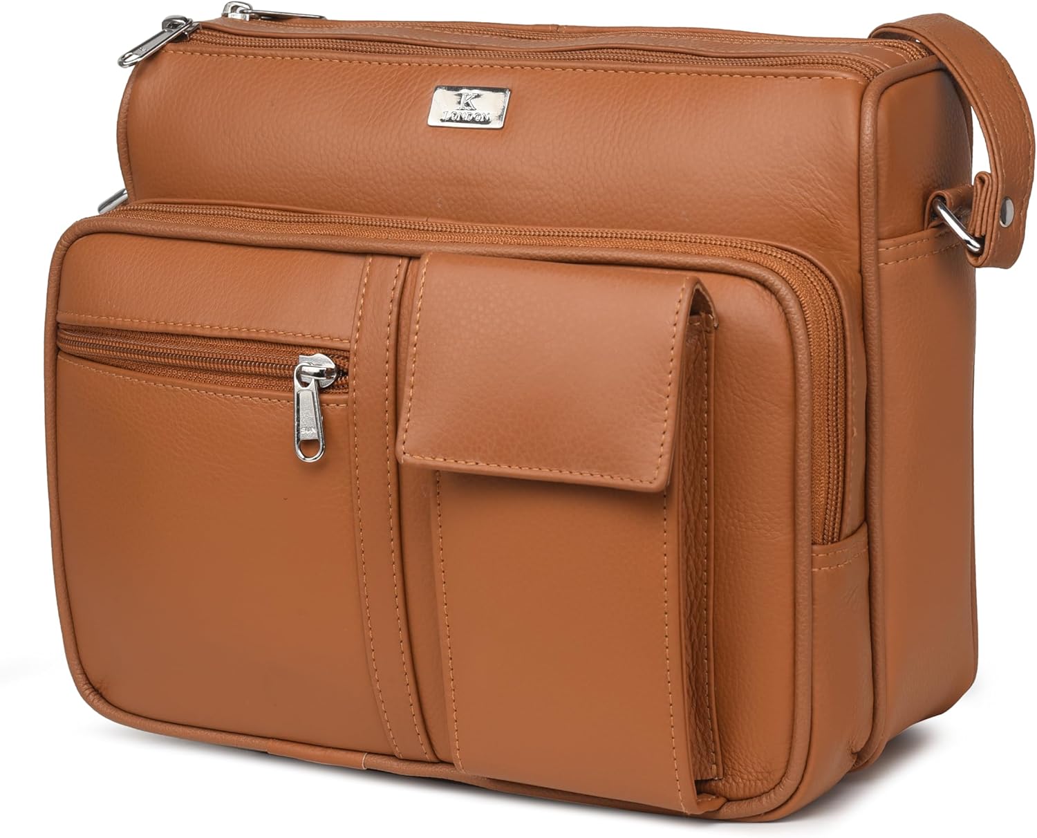 K London Women’s Tan Color Genuine Leather Cross Body Shoulder Bag With 6 Pockets – Large Phone Holder – 4 Credit Card Slots – Single Adjustable Across Strap bag (KL_189_Tan), Khaki, M