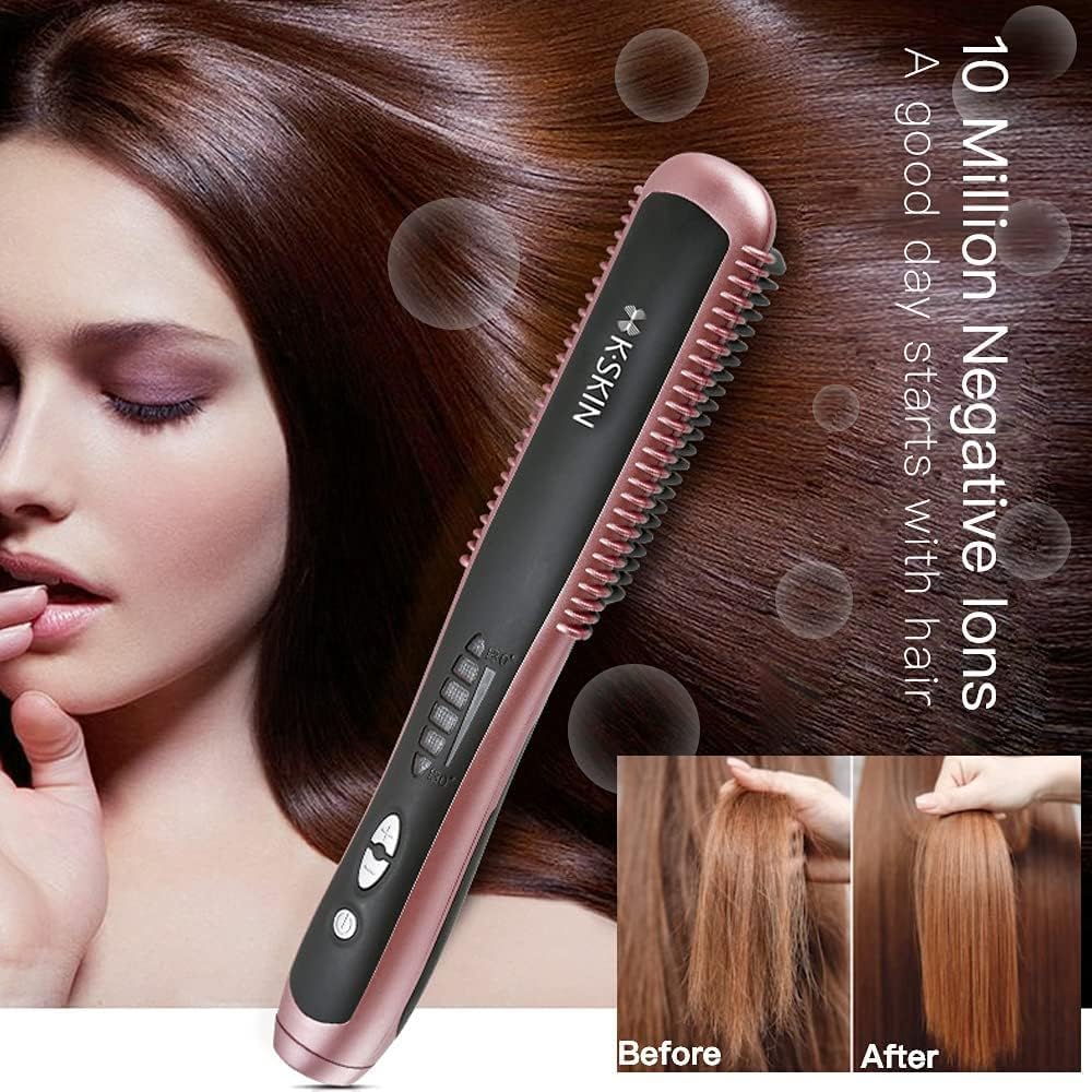 K.SKIN KD388A Electric Hair Straightener Comb – Ceramic Heated Brush with PTC Fast Heating, 6 Temp Levels, Anti-Scald Design, Hair Styling Tool for Women, Home & Travel Use