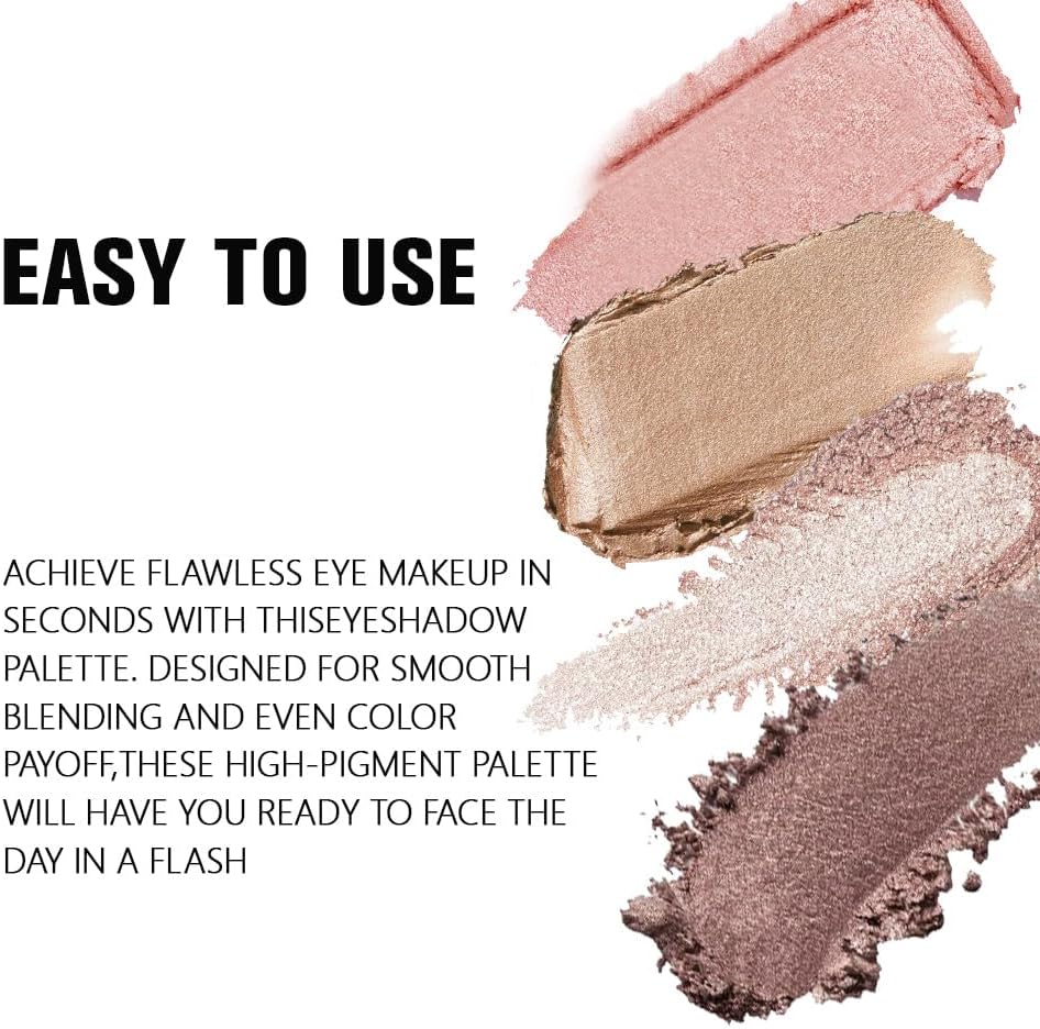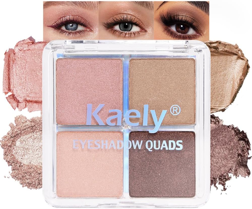 Kaely Powder Eyeshadow Quad, Rose Gold Pink Glitter Eyeshadow Palette Makeup, Neutral Eye Shadow Palette for Women Pigmented Waterproof, Vegan & Cruelty-free, 06