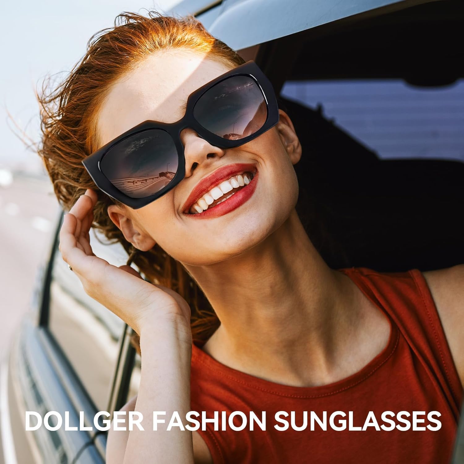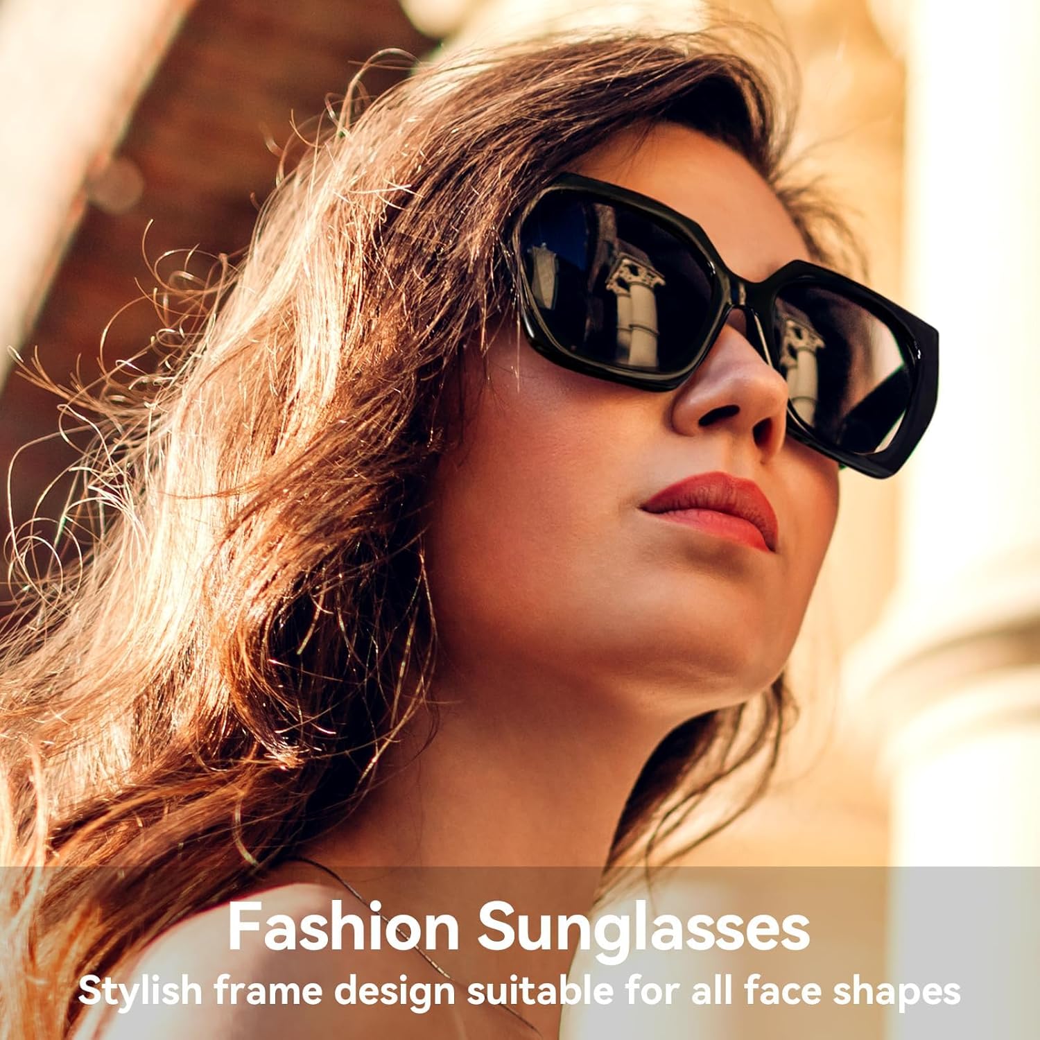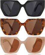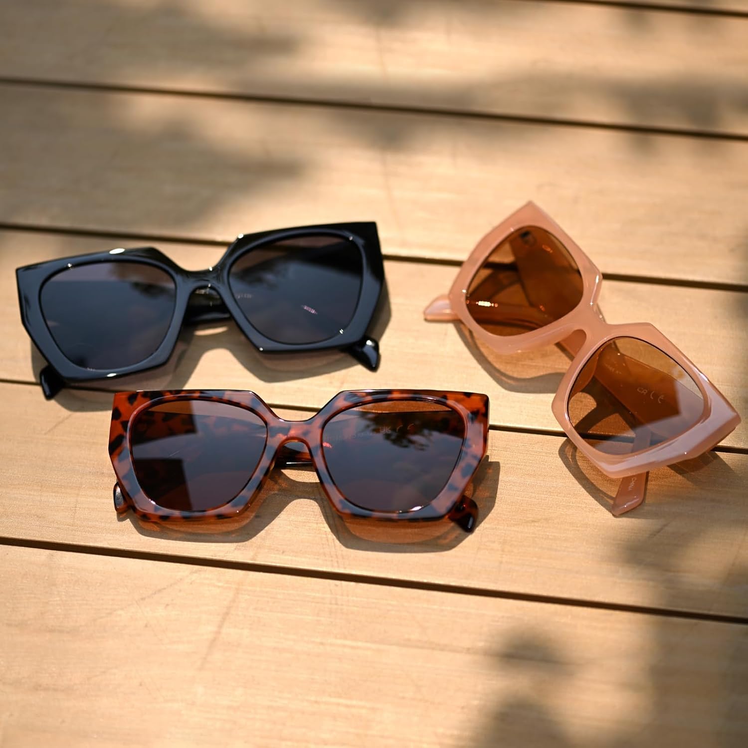 KASTWAVE Square Cat Eye Sunglasses for Women, 70s 80s Fashion Big Shades, Cool Stylish UV400 Protection, Retro Designer Round Sunglasses (3 PCS)