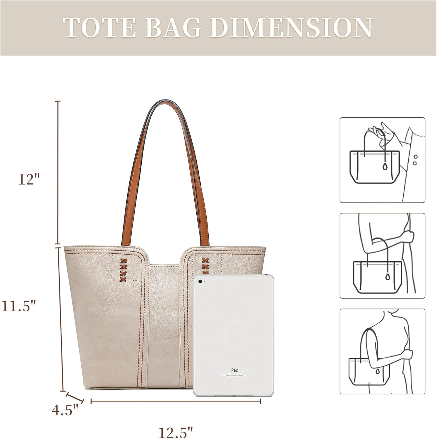 KASTWAVE Tote Bag for Women Top Handle Satchel Purse Oversized Shoulder Handbag Hobo Bags, Ivory Beige