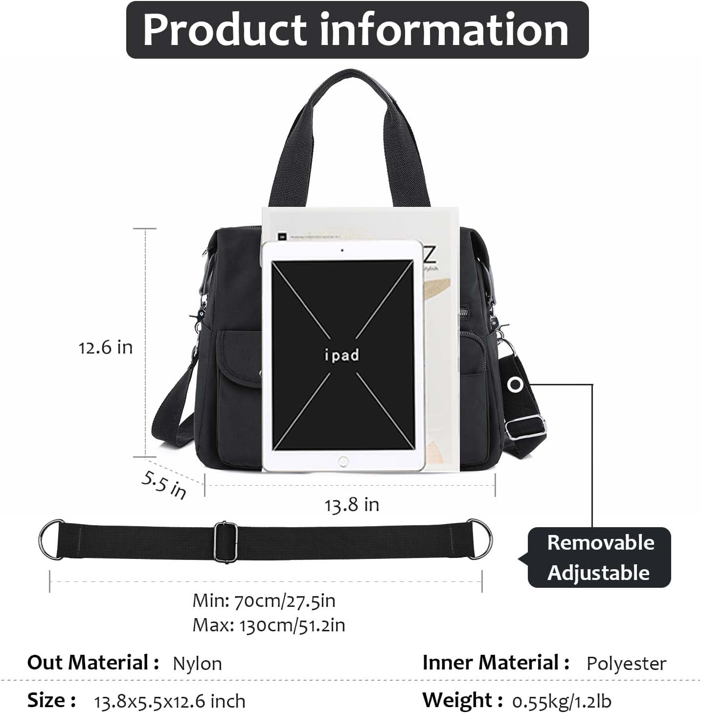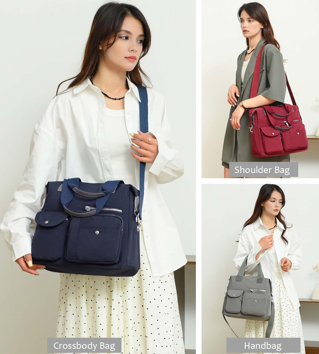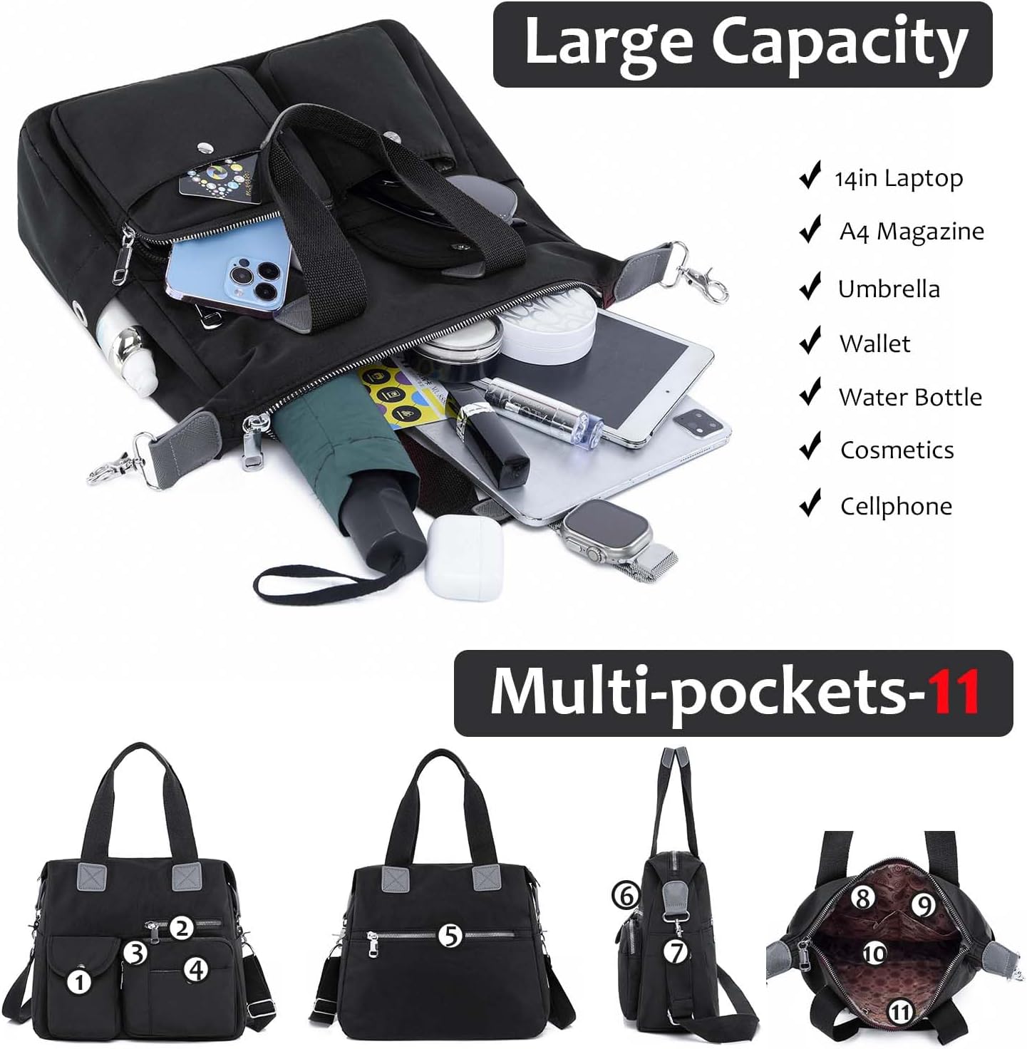 Women Utility Tote Bag Teacher Purses and Handbags for Nurses Waterproof Nylon Multi Pocket Shoulder Bags Work Bag Tote