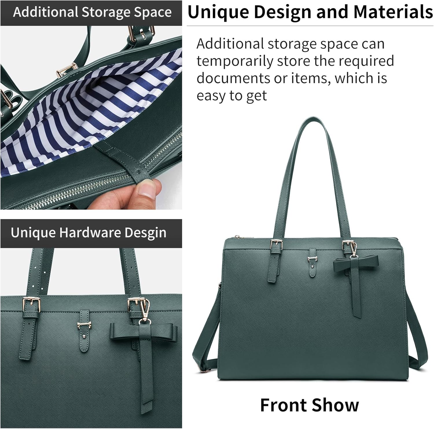 Keyli Laptop Bag for Women Large PU Leather Laptop Briefcase with USB Charging Port Computer Shoulder tote Bags Purse 4pc, Green