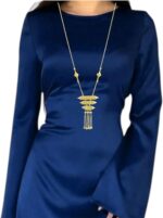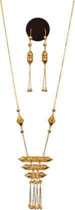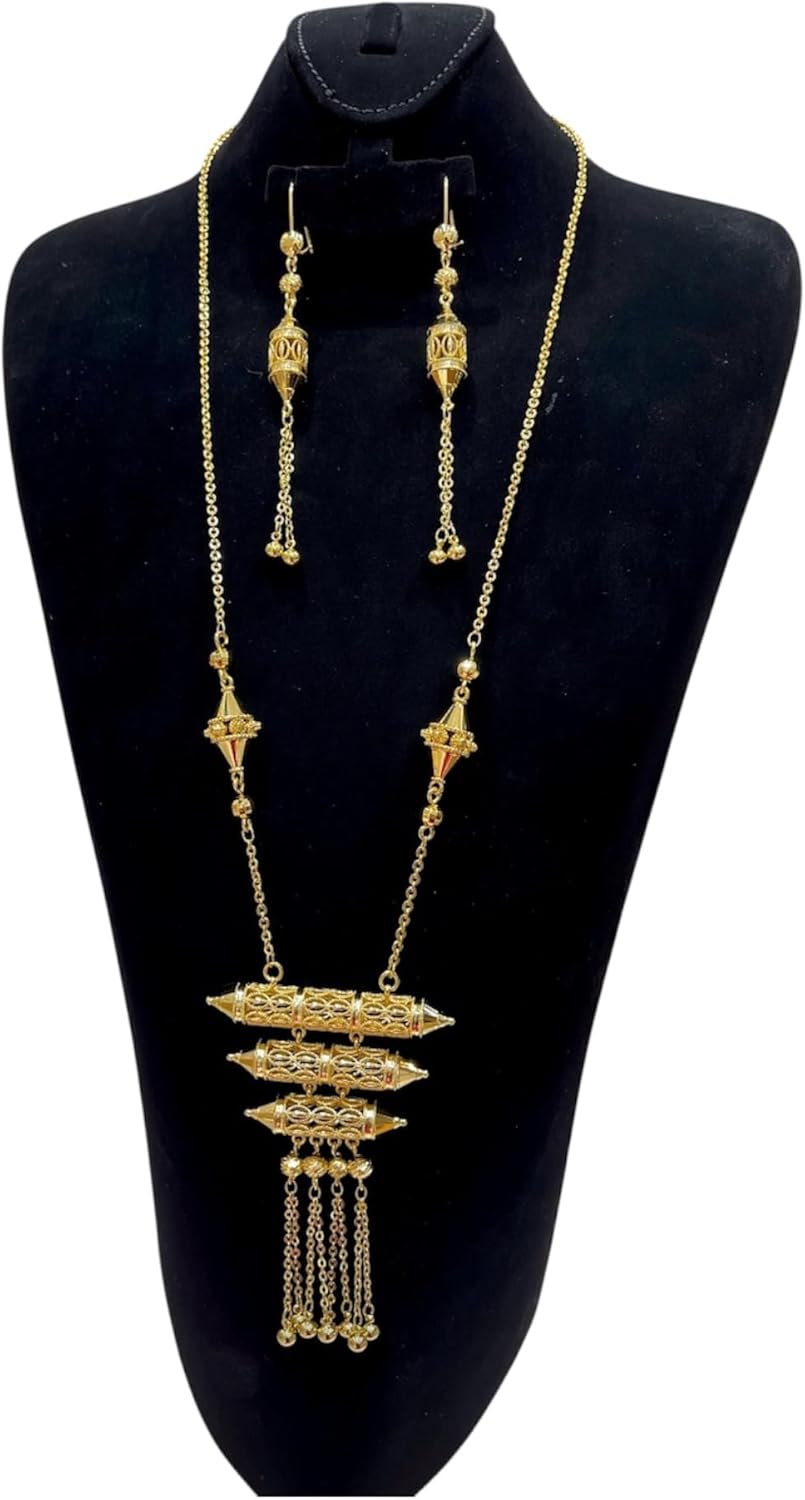Khaleeji Gold Finish Long Necklace & Earring Set for Women – Adjustable Traditional Gulf Arabic Jewelry Gift | طقم عقد وخواتم خليجي فاخر نسائي قابل للتعديل – هدية أنيقة للنساء