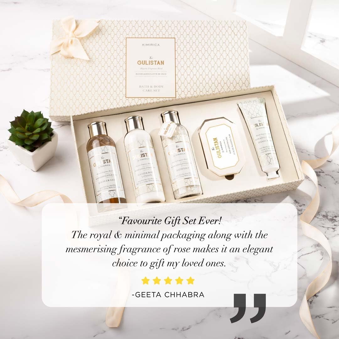 Kimirica The Royal Gulistan Luxury Gift Set | Luxuriously Crafted Gift Hamper For Women and Men | Majestic fragrance of Rose | 5 Piece Gift Set | 100% Vegan