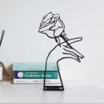 KOLYMAX Creative Abstract Decor The Rose & Hand Statues and Sculptures,Metal Hand Crafted Abstract Modern Sculptures Office Desk Decor, Wrought Iron Line Characters Bookcase Decor Iron Art for Home