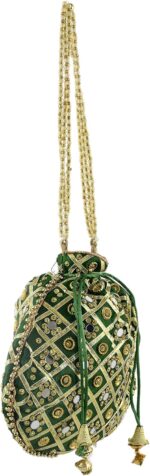 Be the first to review “Kuber Industries 3-Layer Silk Traditional Mirror Work Clutch Potli Batwa Pouch Hand Bag for Bridal, Casual, Party, Wedding (Green)-KUBMART11520, Standard”