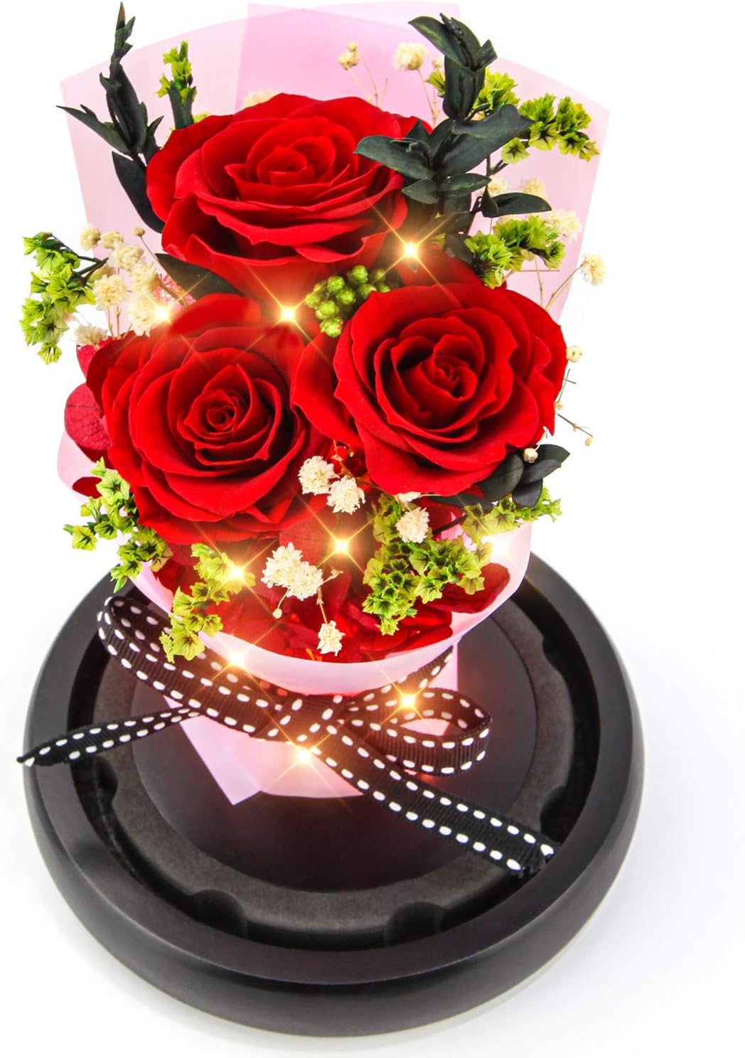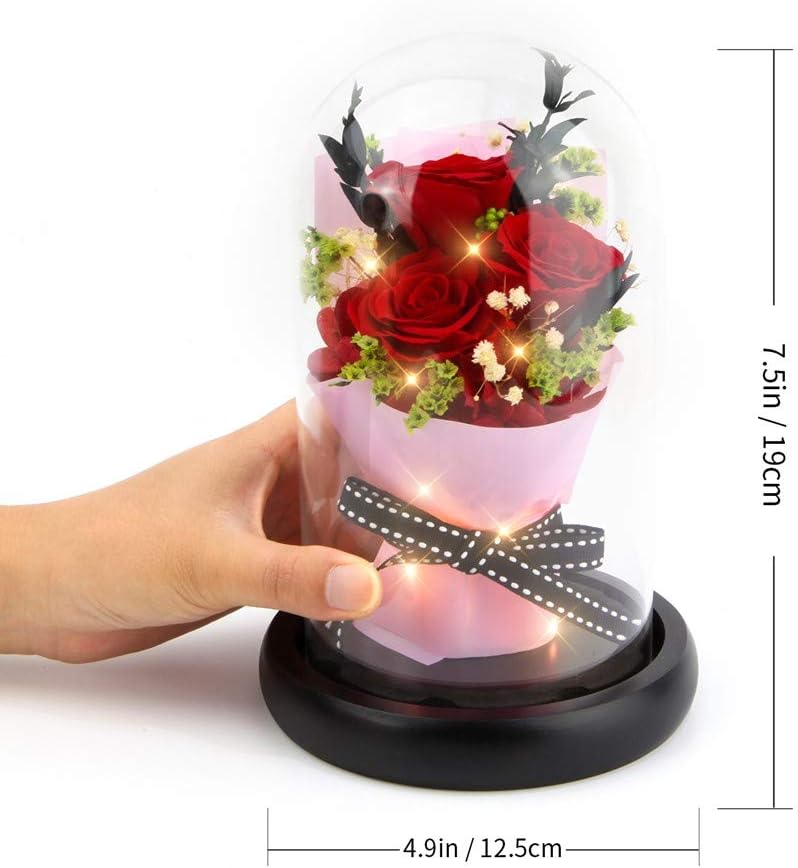 🌹PROFESSIONAL SUPPORT: The package contains 3×Eternal Roses, 1×Gift Box. Designed size, height: 7.5 inches, base diameter: 4.9 inches. All components are included in our first picture, please check details and once receiving the goods, contact us whatever you are not satisfied with, we will help you with 100% attention. Enjoy your online shopping!