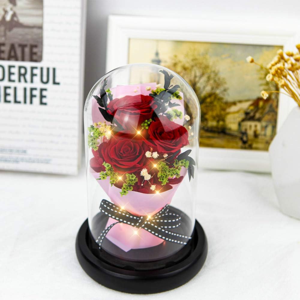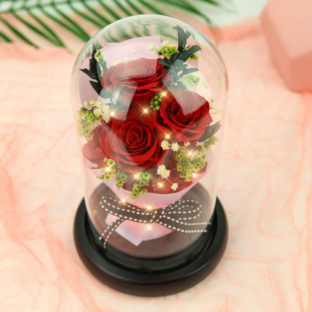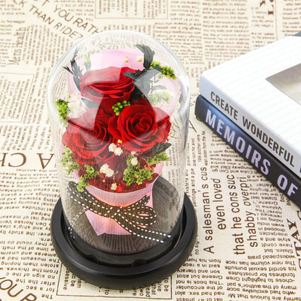 🌹EXQUISITE GIFT: Grande red roses are all picked freshly and manually. After professional preserving process and bundled into bouquet in a crystal glass, with everlasting love and heartfelt appreciation, they become elegant eternal rose, as a special present for your girls, loved ones or friends especially during Mother’s Day, Valentine’s Day, birthday, anniversary, Christmas, Thanksgiving Day.