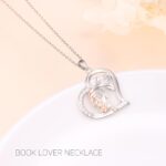 Ladytree Book Lovers Necklace for Women Readers 925 Sterling Silver Reading Pendant Jewelry Accessories Ideas