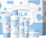 Milk Skincare Set– The LAIKOU Milk Skincare Set offers a complete skincare routine with Cleanser, Toner, Serum, Eye Cream, and Moisturizer, meeting the daily skincare needs