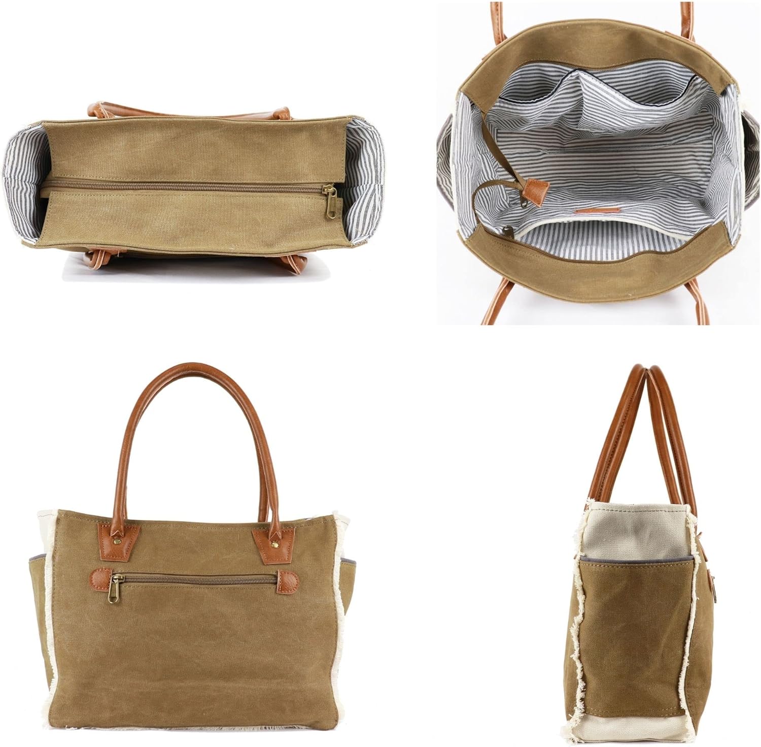 Lamyba Sel De Mer Canvas HandBag Upcycled Canvas Leather Tote Bag